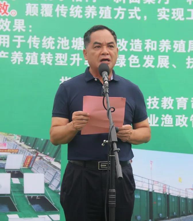 崔利鋒在致辭中表示,“集裝箱+生態池塘”養殖尾水處理技術模式,是促進水產養殖業轉型升級和綠色高質量發展的典型代表,具有節地節水、節力節料、品質可控、智能標準、生態環保和集約高效6大方面的顯著優勢,連續三年入選農業農村部十大引領性技術,已在全國24個省(區、市)推廣應用,養殖箱體達到3000多個。今年3月,農業農村部在全國部署開展水產綠色健康養殖“五大行動”,將集裝箱式循環水養殖技術模式列為重點推薦技術模式,將養殖尾水生態治理模式作為“五大行動”之一,進一步加大示范推廣力度,推進水產養殖業綠色高質量發展。