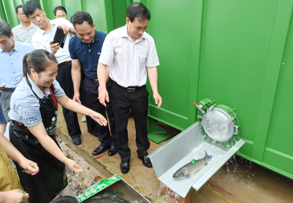 李首群在致辭中說,近年來,桂林市圍繞“提質增效、減量增收、綠色發展、富裕漁民”目標,加快推進水產養殖業綠色高質量發展。自主創立打造的“田里種稻、坑中養魚、基面經作、蓬上瓜果”高標準稻漁綜合種養桂林模式,2017年獲得首屆全國稻漁綜合種養模式創新大賽金獎,2018年成功創建全國稻漁綜合種養示范區,成功引進冷水魚和大閘蟹養殖,積極探索“集裝箱養魚”“池塘內循環水槽養殖”“種藕養魚”“種菜養魚”、山區小窩流水養魚等新型“凈水漁業”養殖模式和休閑漁業,取得了較好效果。全國“集裝箱+生態池塘”尾水處理技術模式觀摩活動”在桂林舉辦,是桂林市農業的一件大喜事,也是促進桂林進一步提升水產養殖業綠色高質量發展的一個重要契機。